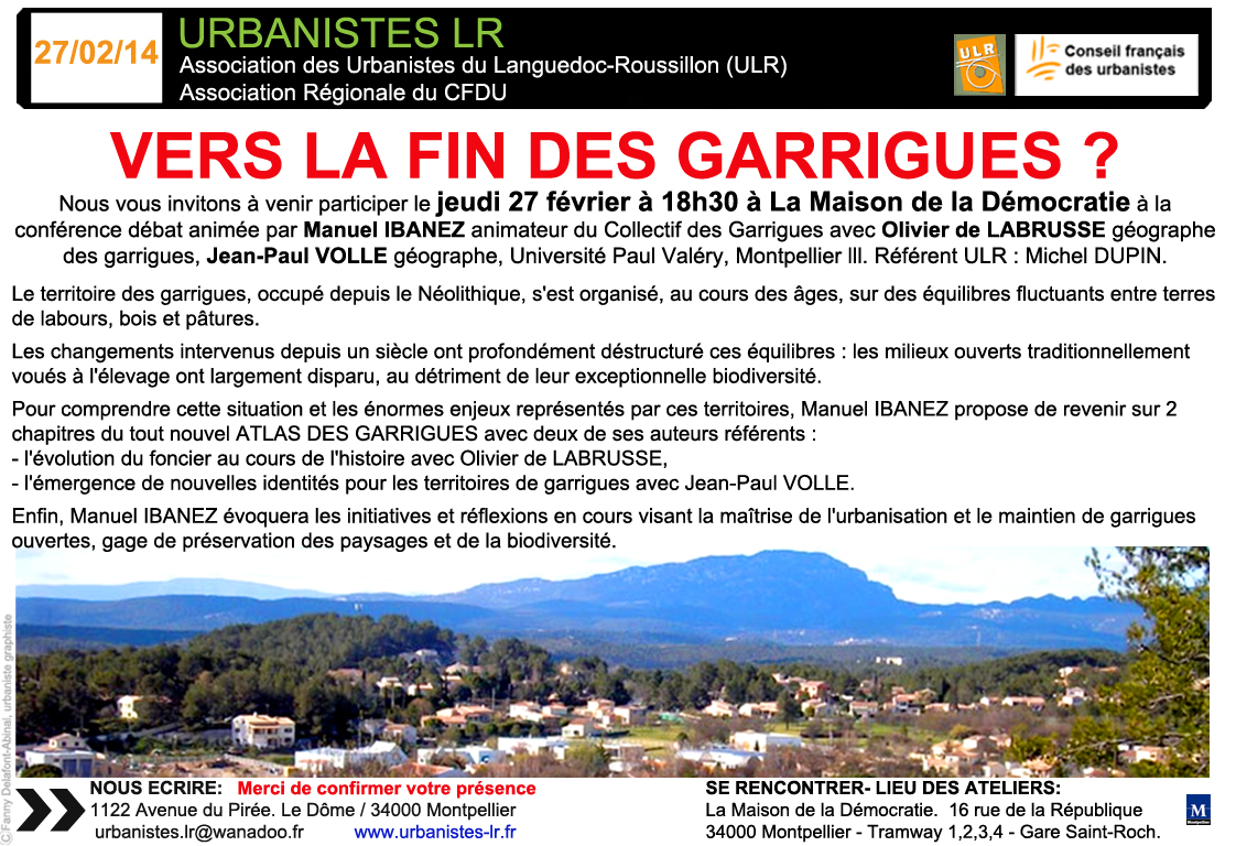 | 27 Février | VERS LA FIN DES GARRIGUES ? avec la collaboration des Ecologistes de L'Euzière à la Maison de la Démocratie - Référent M. DUPIN affiche |